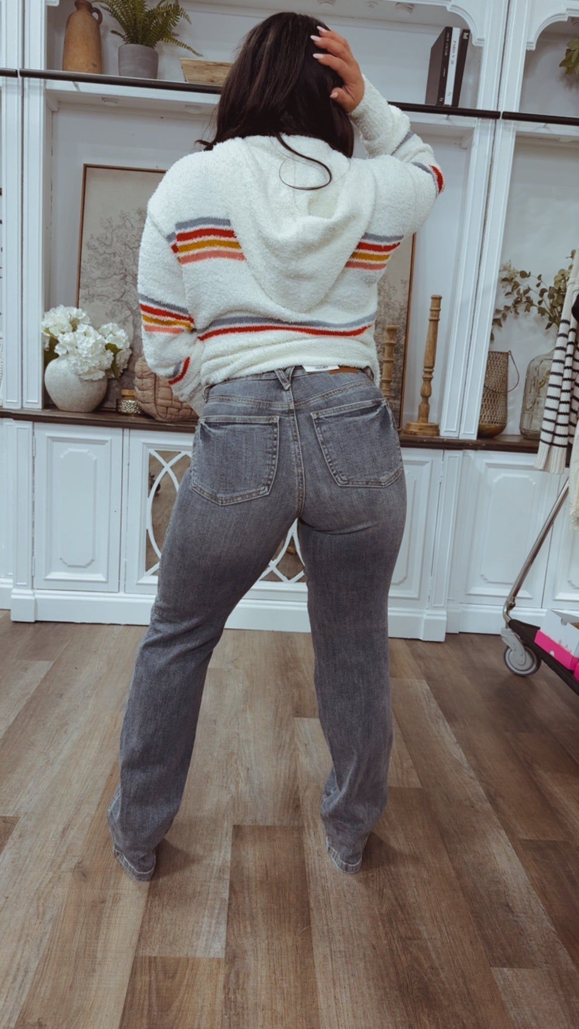 These high-waist jeans are all about flattering your curves while keeping you comfy! The tummy control design smooths and shapes for a sleek silhouette, while the straight-leg cut gives a modern, timeless look. Soft, stretchy, and perfect for everyday wear — these are a must-have for your denim collection.
