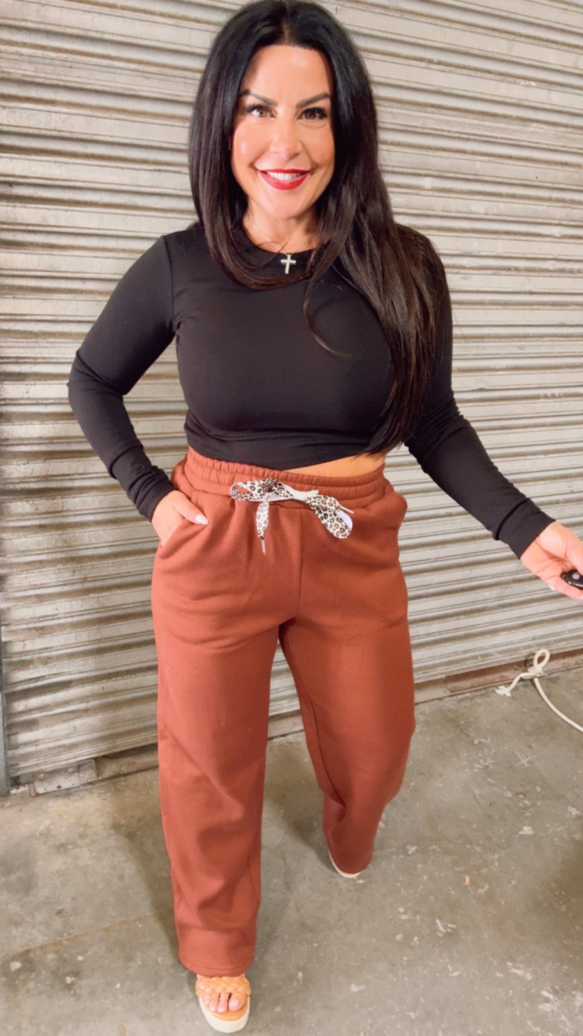 Your new off-duty essential just dropped! These rust-colored straight leg joggers are soft, sleek, and oh-so-flattering. The premium fabric blend gives you that cozy feel with a polished look — perfect for lounging, traveling, or styling up for a chill day out. The straight leg cut keeps it modern and elevated while staying effortlessly comfy. ☁️