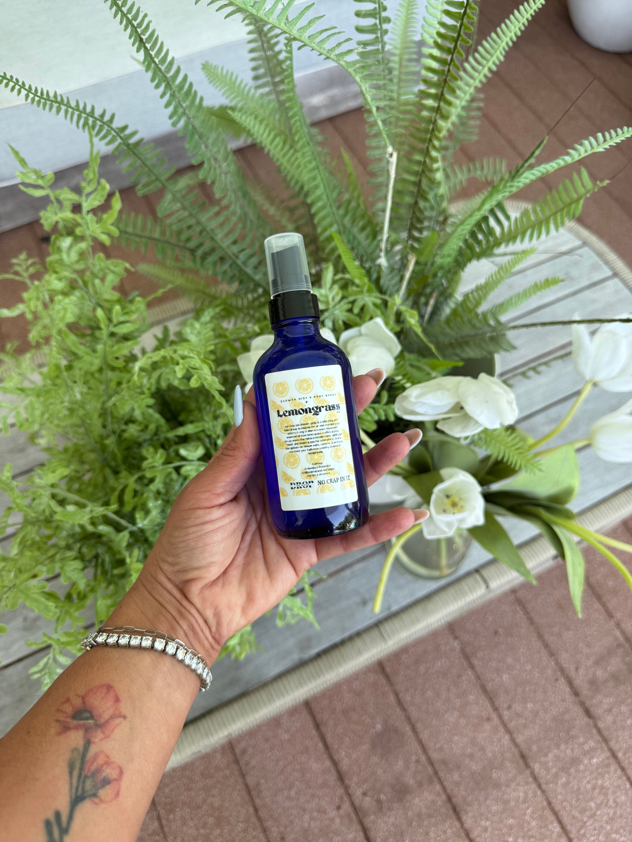 Lemongrass shower & home spray is a refreshing and natural way to cleanse the air and revitalize your senses during or after a shower also incredible as a room spray. Made with essential oil from lemongrass, it offers a crisp, citrusy aroma that helps eliminate odors, uplift your mood, and create a spa-like atmosphere. Just a few spritzes on shower walls, curtains, or in the air can leave your home smelling clean and invigorating.
