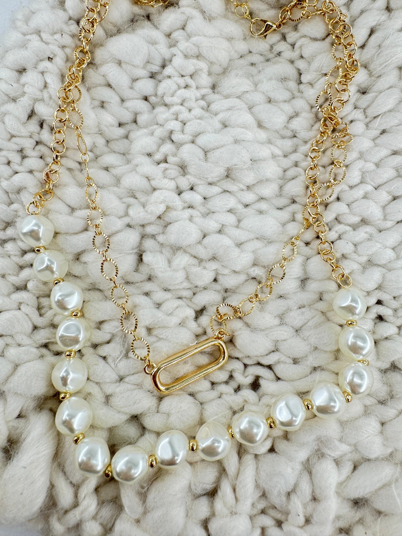 Elevate any outfit with this stunning Gold and Pearl Chain Necklace! The delicate gold chain paired with chic pearls adds a touch of elegance and sophistication, perfect for both everyday wear and special occasions.