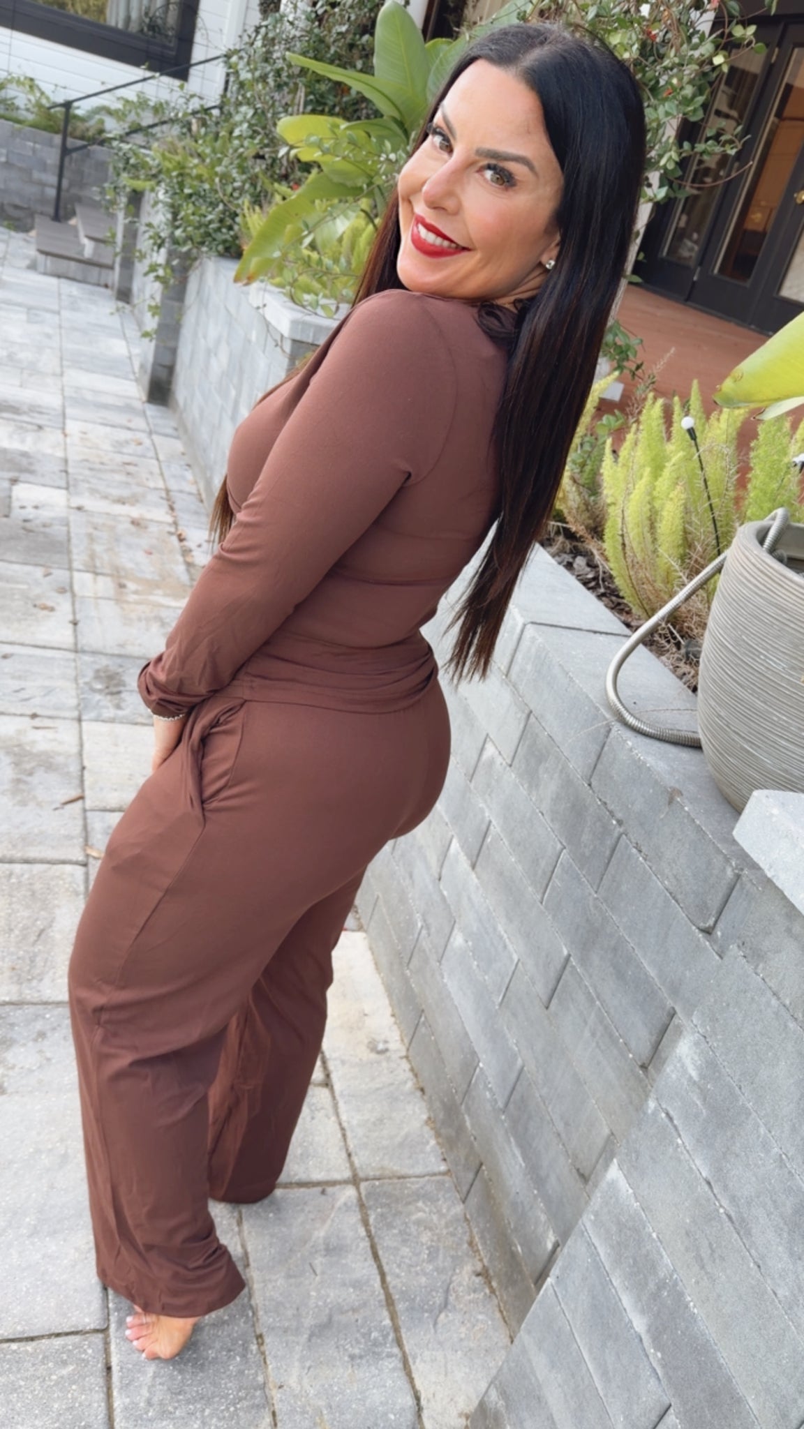 Ultra Soft Brown Long Sleeve And Pants Essential Set