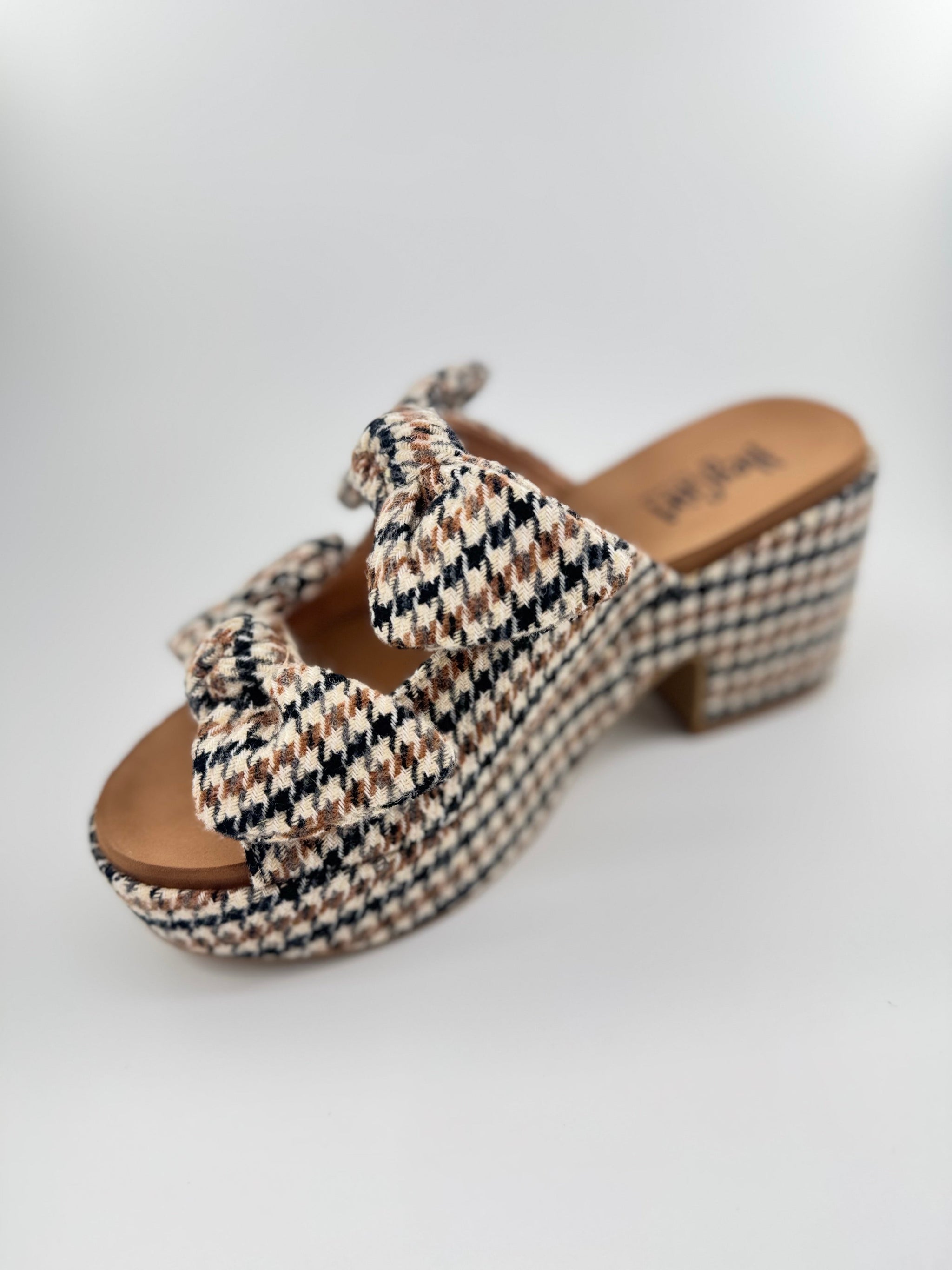 Black and Tan Plaid Corky Chunky Houndstooth Heel