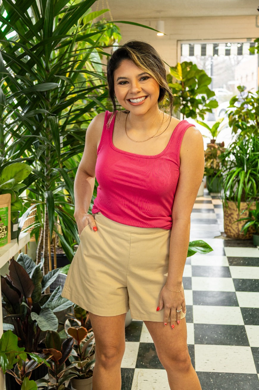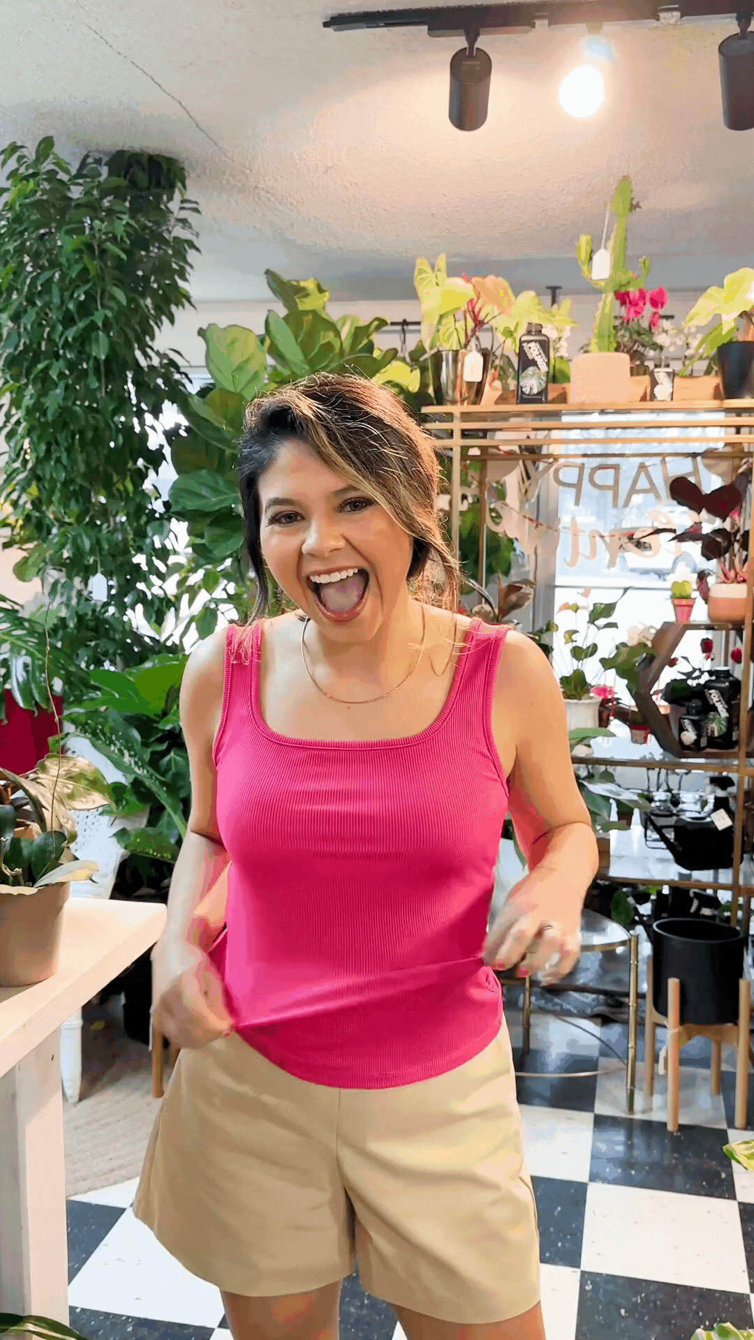 Perfect for layering or wearing solo, this pink rib knit tank is a must-have staple for every girly closet.