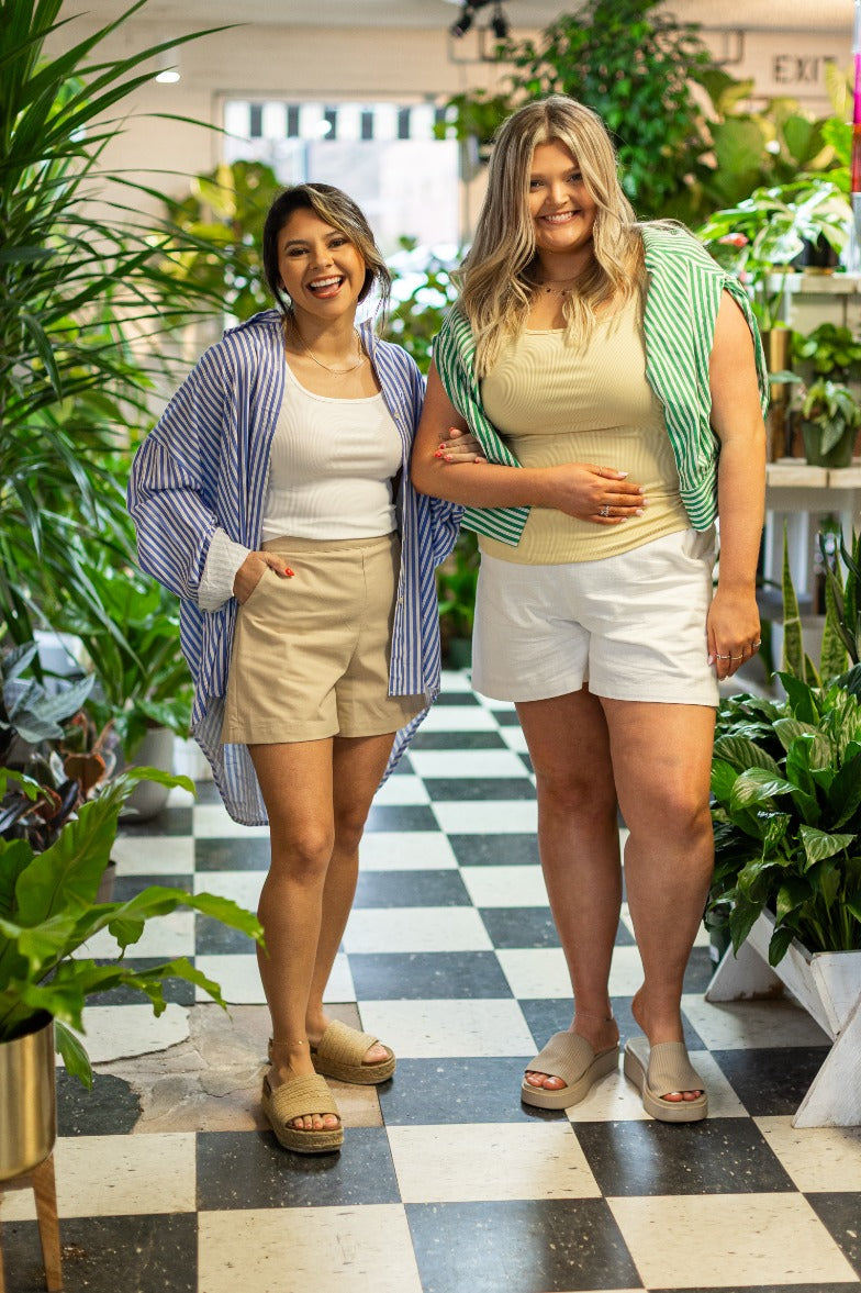 Style with light-wash denim shorts or jeans and white sneakers. Throw on a cropped cardigan for an effortlessly cute everyday look.