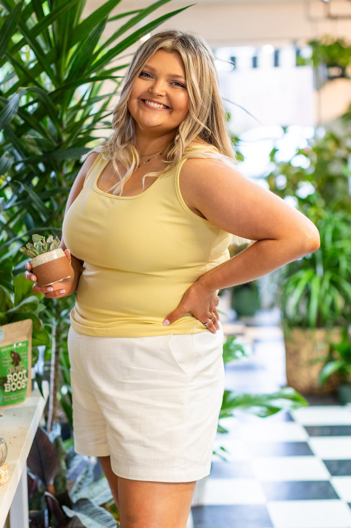 Say hello to your new favorite sunny staple: the Bella Square Neck Rib Knit Tank Top in Yellow. With a flattering square neckline and soft ribbed knit fabric, this tank hugs your curves in all the right places while keeping you comfy and breathable.