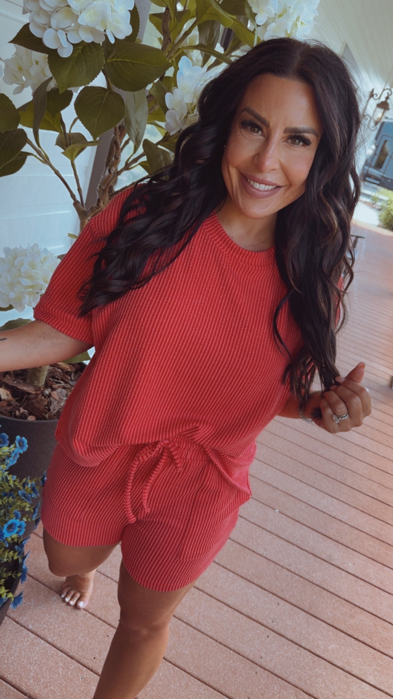 Ultra Soft Red Lightweight Top and Shorts Set