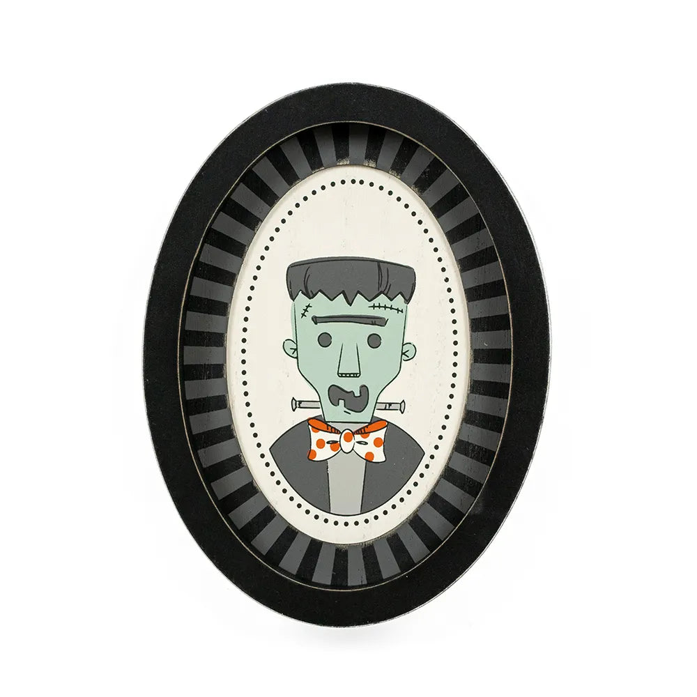 Add a spooky-sweet touch to your decor with these 6x8x1.5” wood frame signs, available in three fun Halloween styles: Frankenstein, Cat, or Pumpkin! Each one brings playful charm to shelves, mantels, or entry tables.